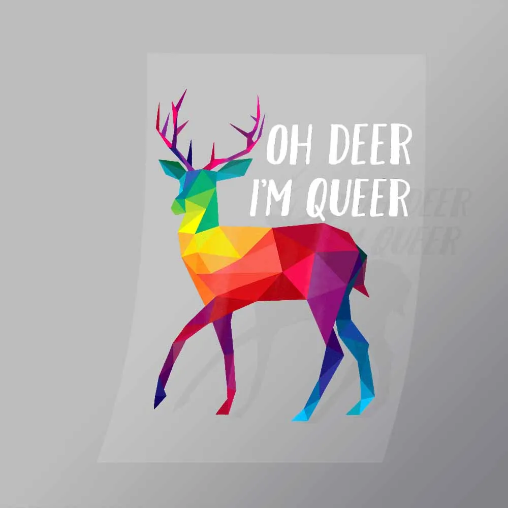 A great Oh Deer Im Queer DTF (Direct to Film) Transfer available in multiple sizes. (Beased on width at artwork aspect ratio)