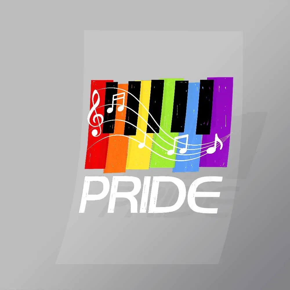 A great Pride Music DTF (Direct to Film) Transfer available in multiple sizes. (Beased on width at artwork aspect ratio)