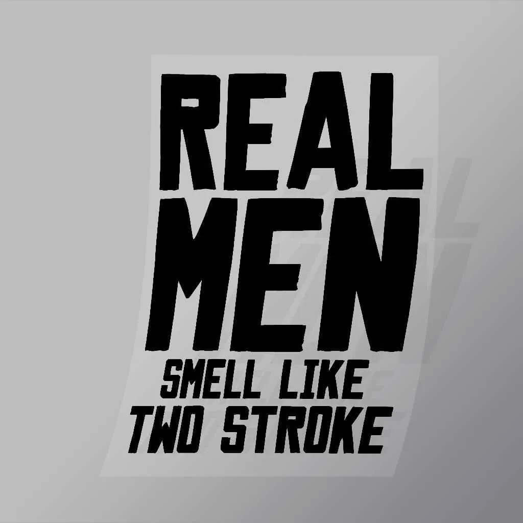 A great Real Men Smell Like Two Stroke DTF (Direct to Film) Transfer available in multiple sizes. (Beased on width at artwork aspect ratio)