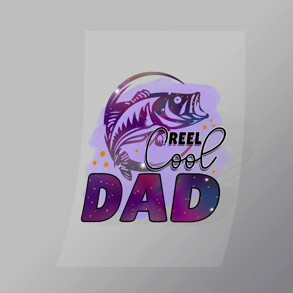 A great Reel Cool Dad Galaxy DTF (Direct to Film) Transfer available in multiple sizes. (Beased on width at artwork aspect ratio)
