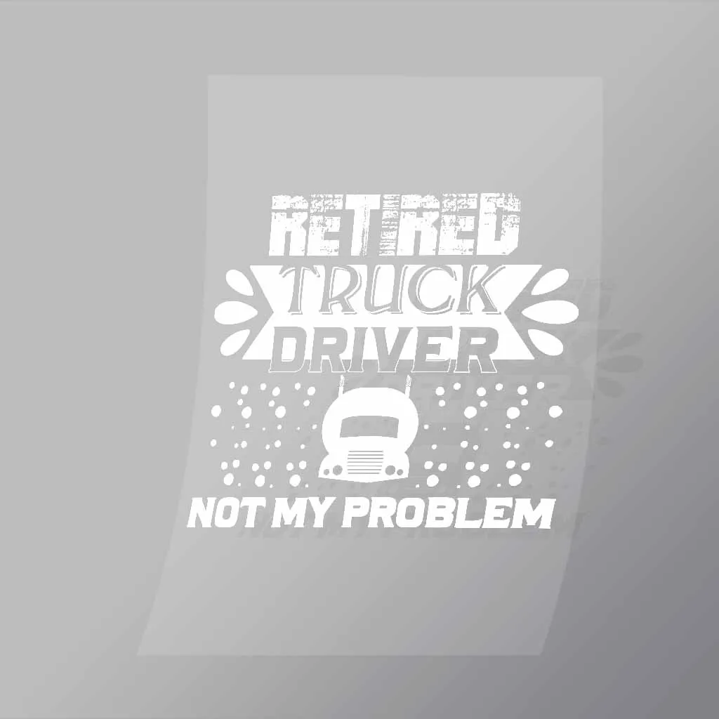 A great Retired Truck Driver Not My Problem DTF (Direct to Film) Transfer available in multiple sizes. (Beased on width at artwork aspect ratio)
