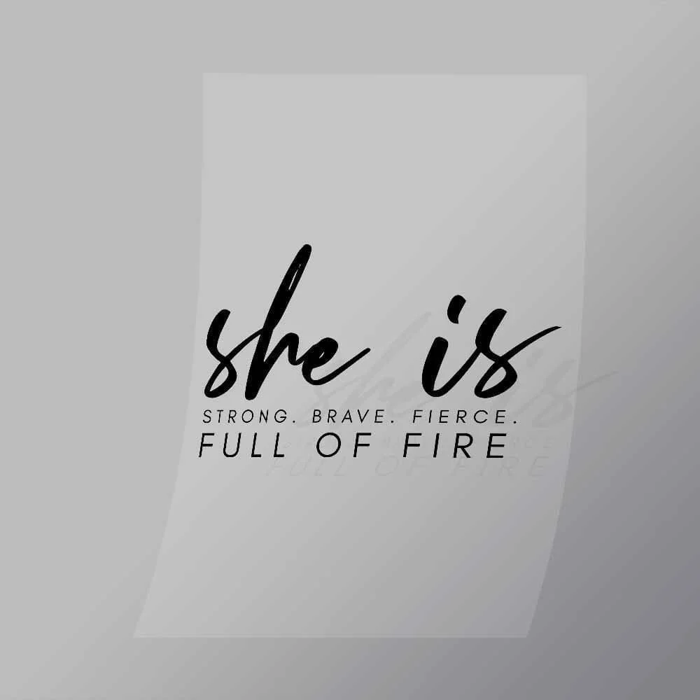 She Is Strong Brave Feirce Full Of Fire DTF Apparel Transfer