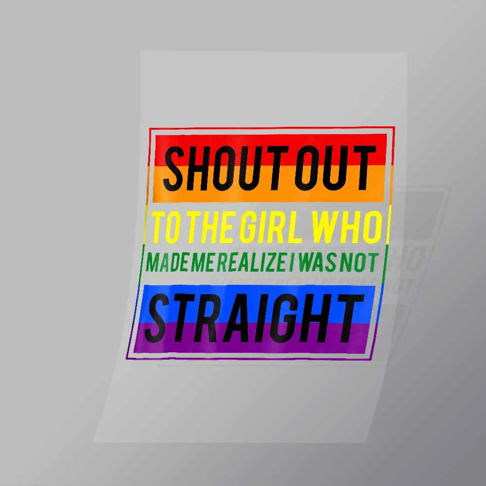 A great Shout Out To The Girl Who Made Me Realize I Was Not Staight DTF (Direct to Film) Transfer available in multiple sizes. (Beased on width at artwork aspect ratio)