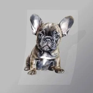 A great Sitting Puppy Pug DTF (Direct to Film) Transfer available in multiple sizes. (Beased on width at artwork aspect ratio)