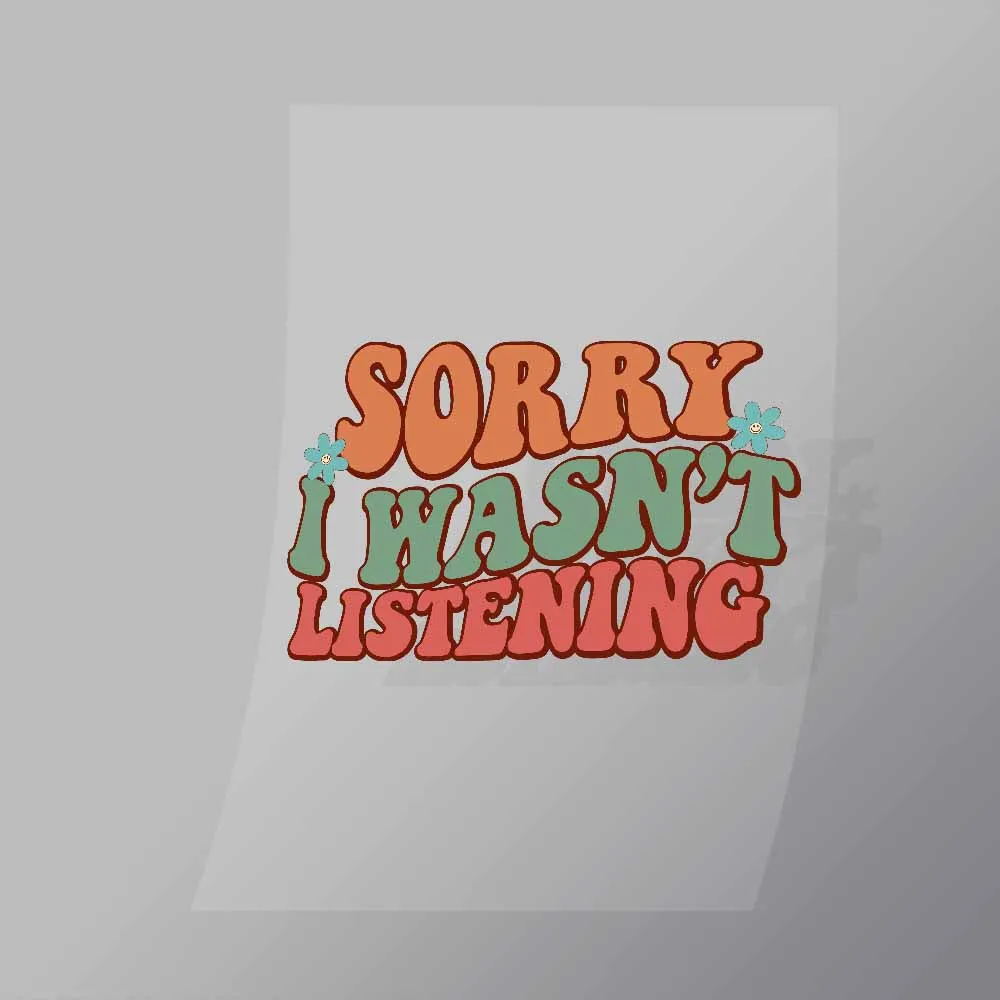 A great Sorry I Wasnt Listening DTF (Direct to Film) Transfer available in multiple sizes. (Beased on width at artwork aspect ratio)