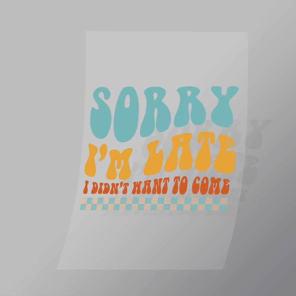 Sorry Im Late I Didnt Want To Come DTF Apparel Transfer