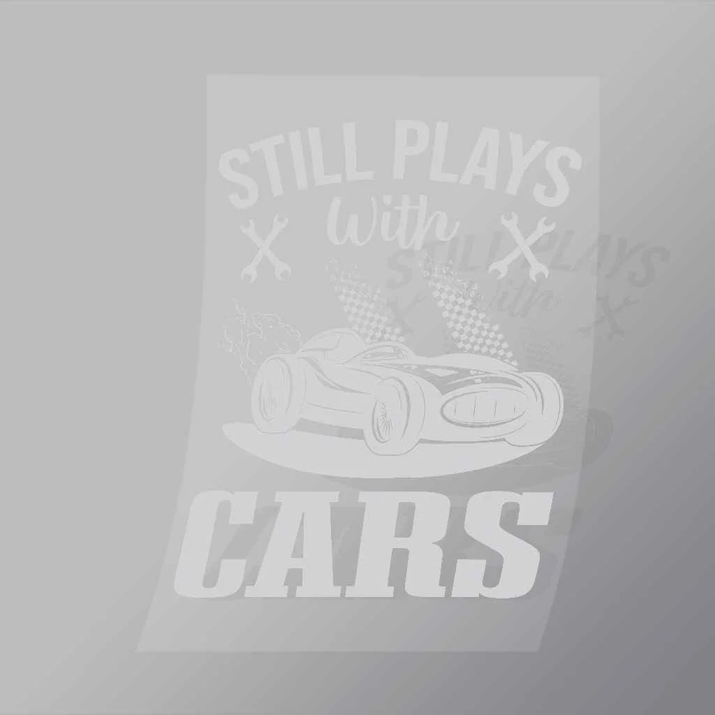 A great Still Plays With Cars DTF (Direct to Film) Transfer available in multiple sizes. (Beased on width at artwork aspect ratio)