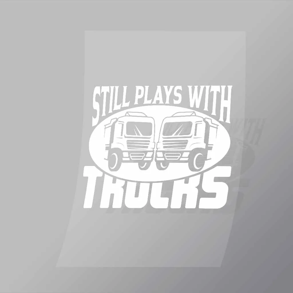A great Still Plays With Trucks DTF (Direct to Film) Transfer available in multiple sizes. (Beased on width at artwork aspect ratio)