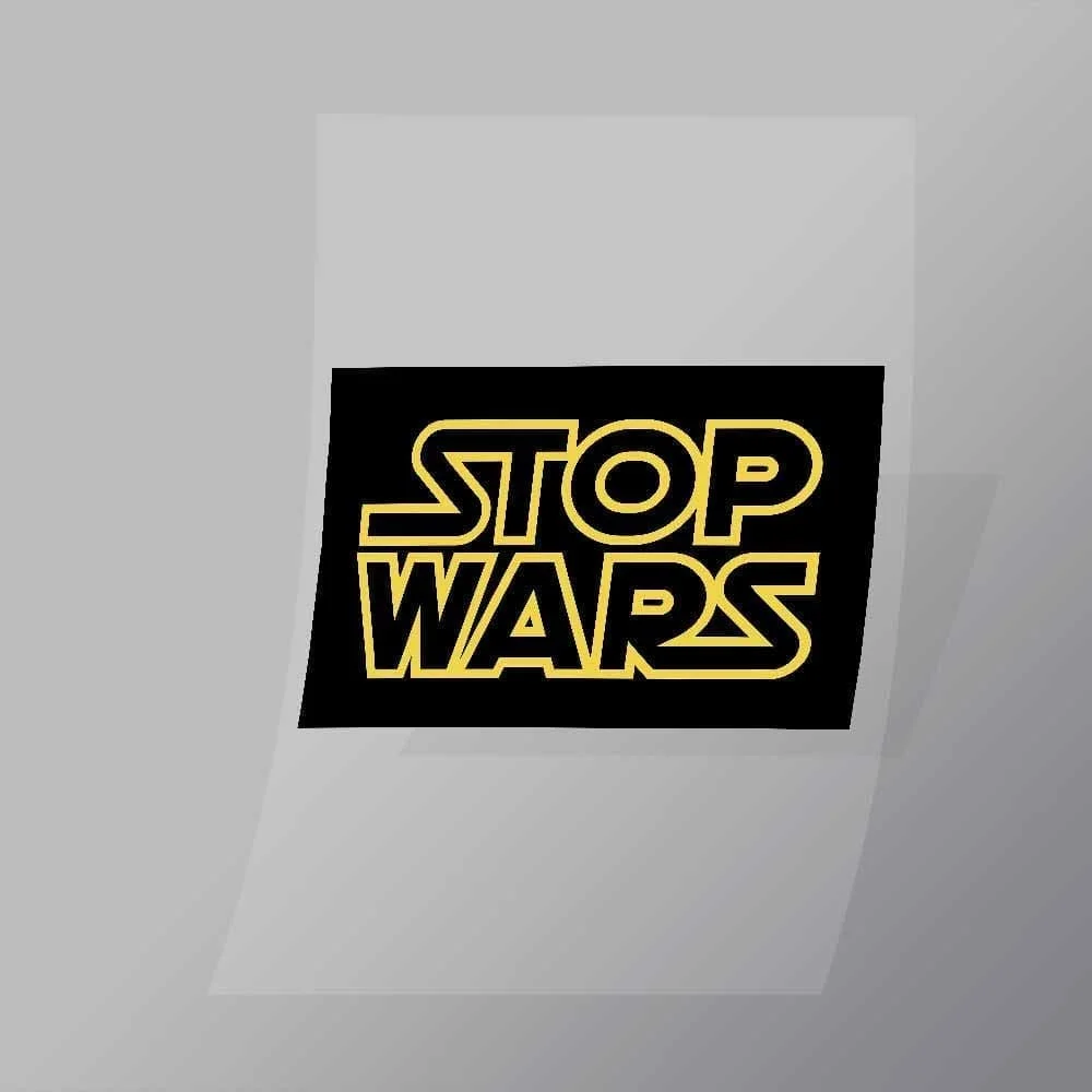 A great Stop Wars Brand Spoof DTF (Direct to Film) Transfer available in multiple sizes. (Beased on width at artwork aspect ratio)