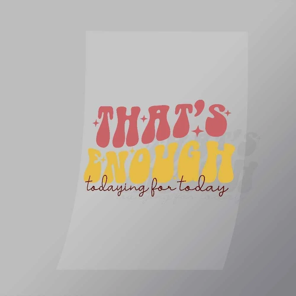 A great Thats Enough Todaying For Today DTF (Direct to Film) Transfer available in multiple sizes. (Beased on width at artwork aspect ratio)