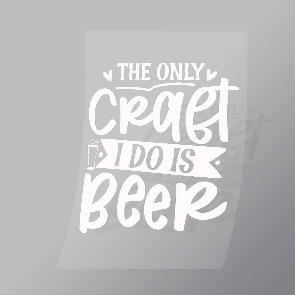 A great The Only Craft I Do Is Beer White DTF (Direct to Film) Transfer available in multiple sizes. (Beased on width at artwork aspect ratio)