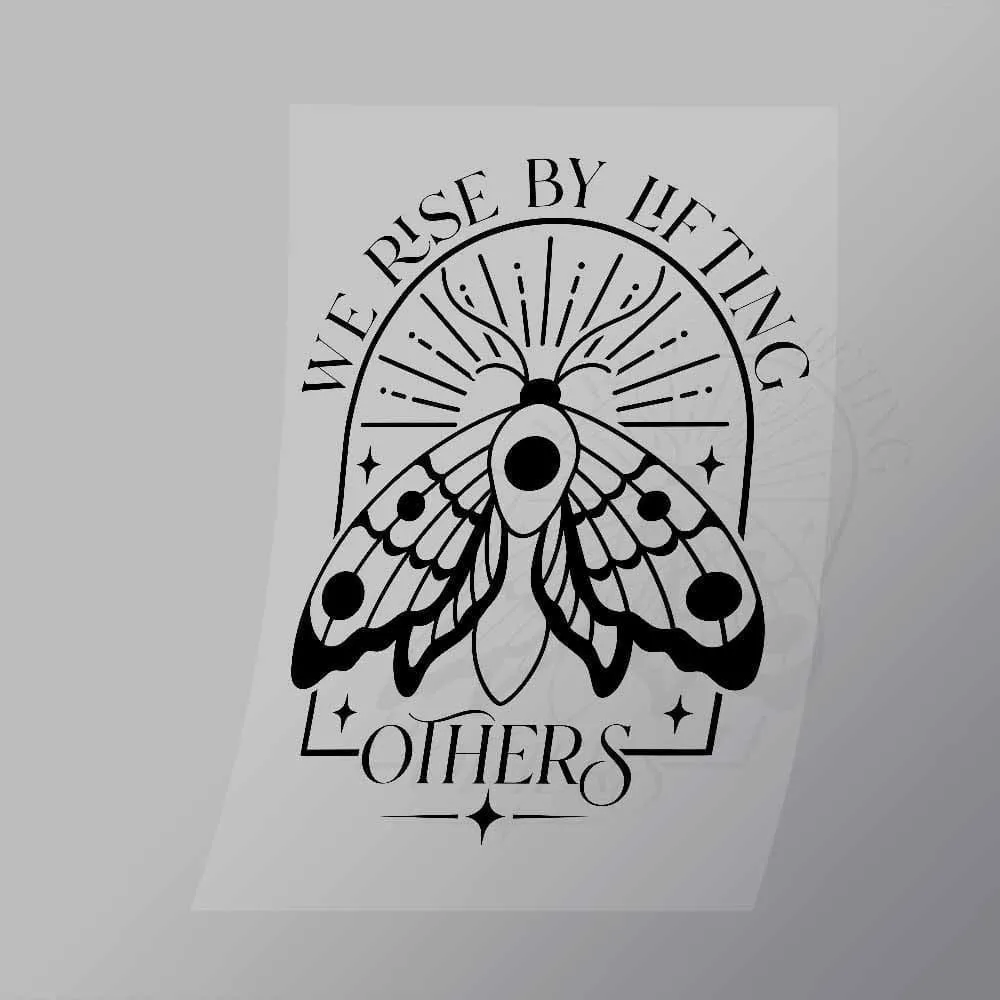 A great We Rise By Lifting Others DTF (Direct to Film) Transfer available in multiple sizes. (Beased on width at artwork aspect ratio)