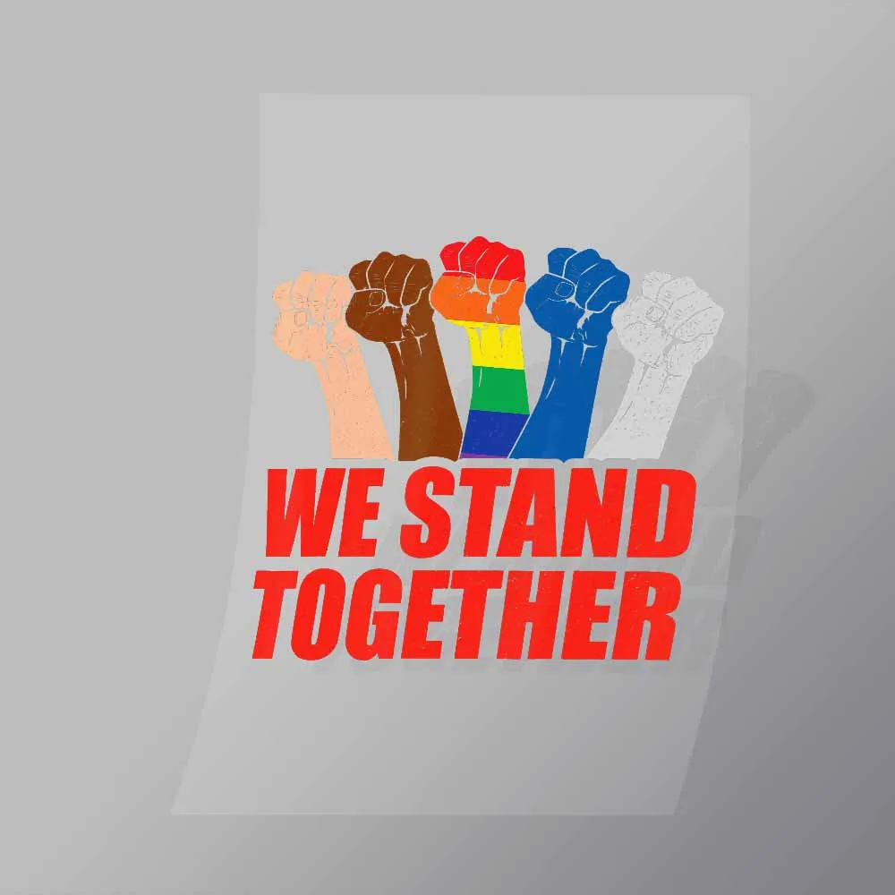 A great We Stand Together DTF (Direct to Film) Transfer available in multiple sizes. (Beased on width at artwork aspect ratio)