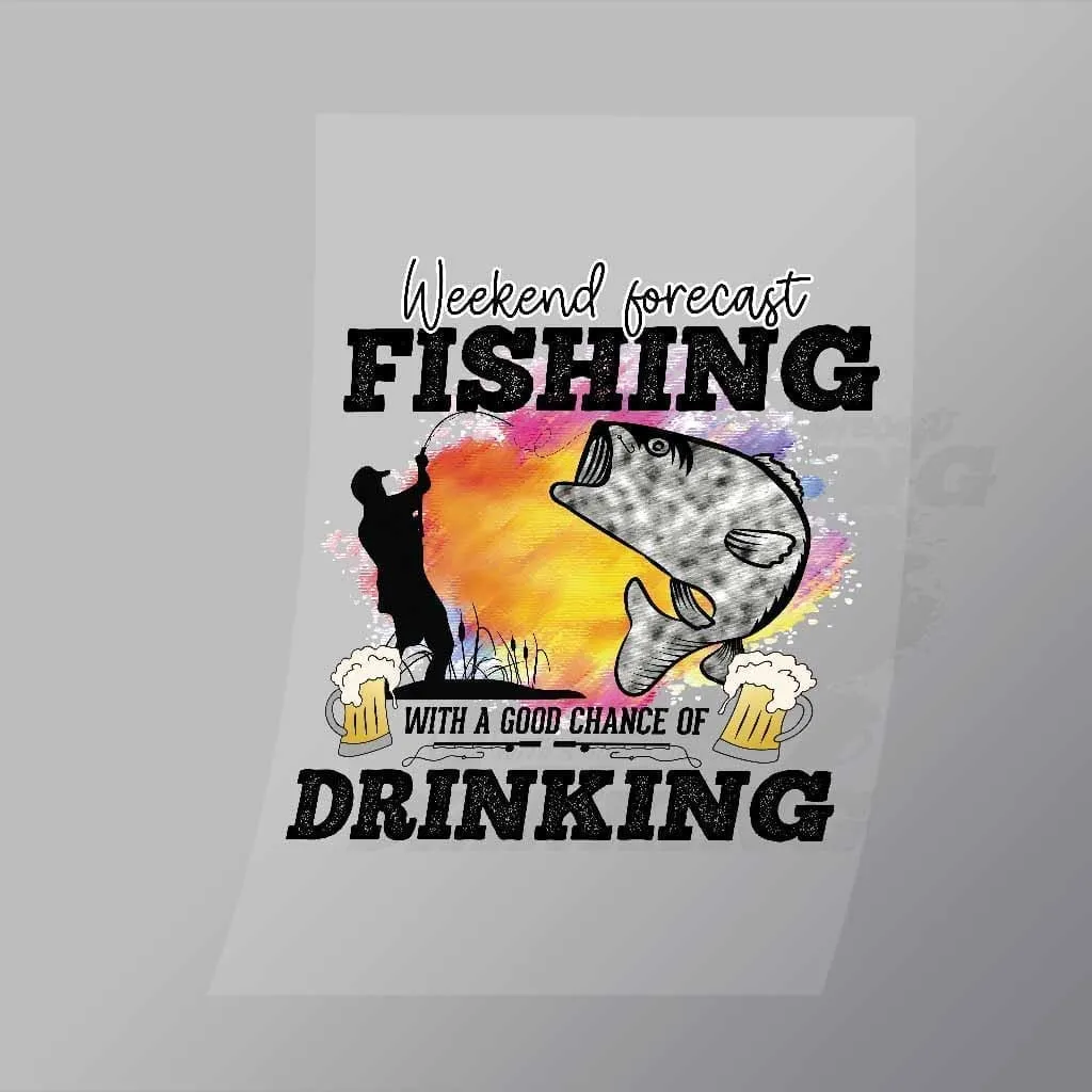 A great Weekend Forcast Fishing With A Good Chance Of Drinking DTF (Direct to Film) Transfer available in multiple sizes. (Beased on width at artwork aspect ratio)