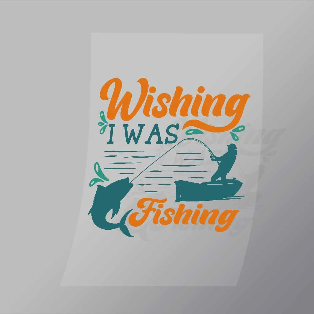 A great Wishing I Was Fishing DTF (Direct to Film) Transfer available in multiple sizes. (Beased on width at artwork aspect ratio)