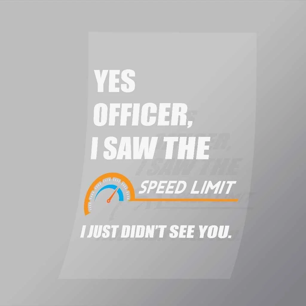 A great Yes Officer I Saw The Speed Limit I Just Didnt See You DTF (Direct to Film) Transfer available in multiple sizes. (Beased on width at artwork aspect ratio)
