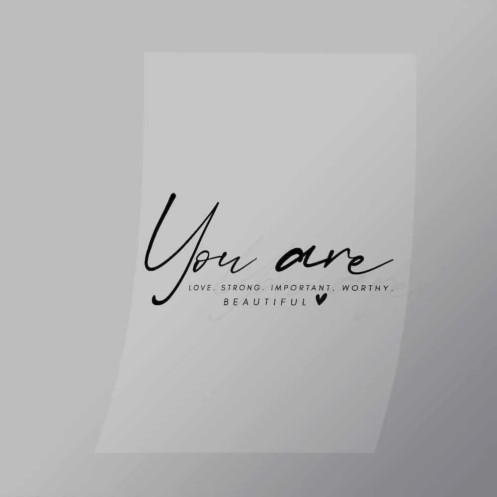 A great You Are Beautiful DTF (Direct to Film) Transfer available in multiple sizes. (Beased on width at artwork aspect ratio)