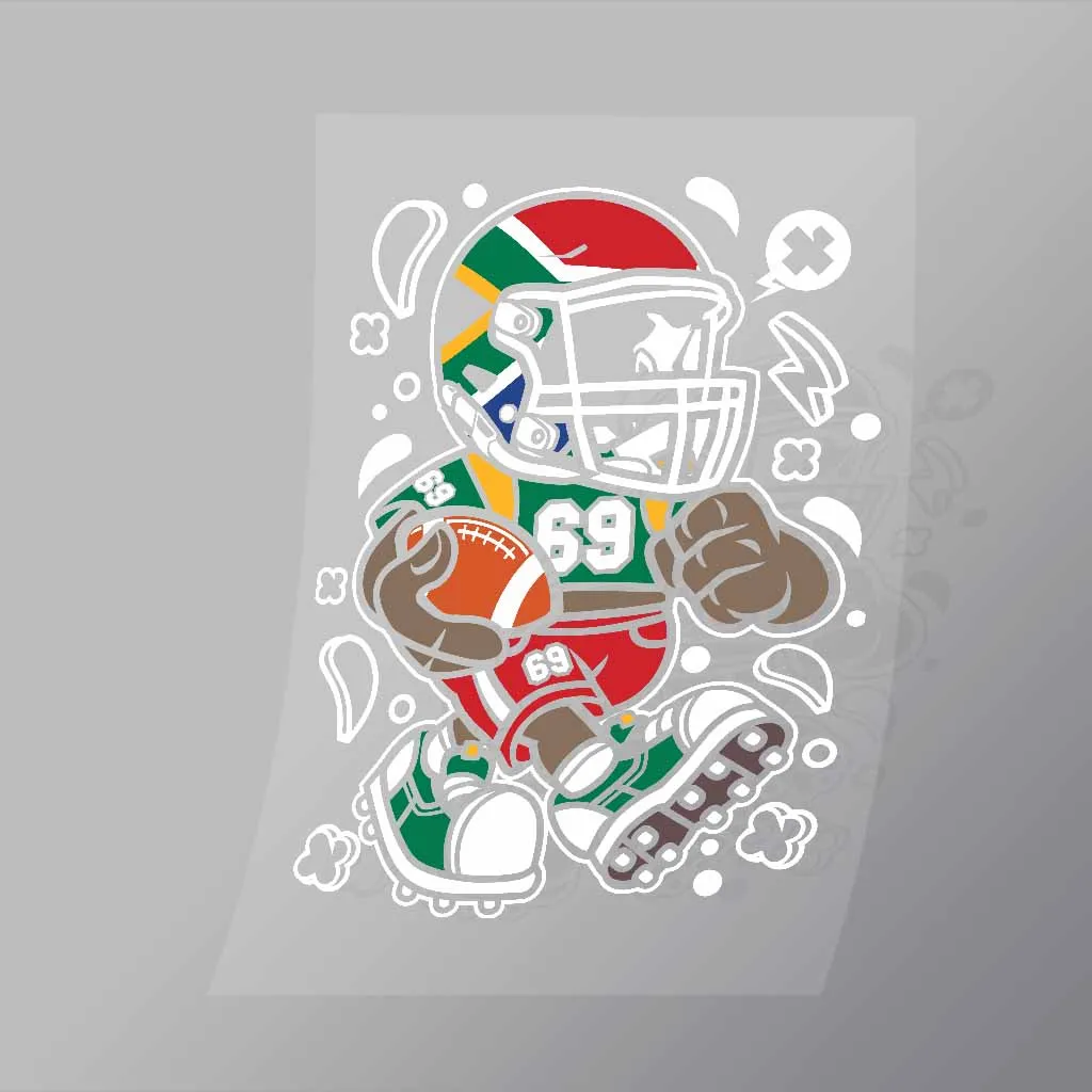 A great African Football Kid DTF (Direct to Film) Transfer available in multiple sizes. (Beased on width at artwork aspect ratio)