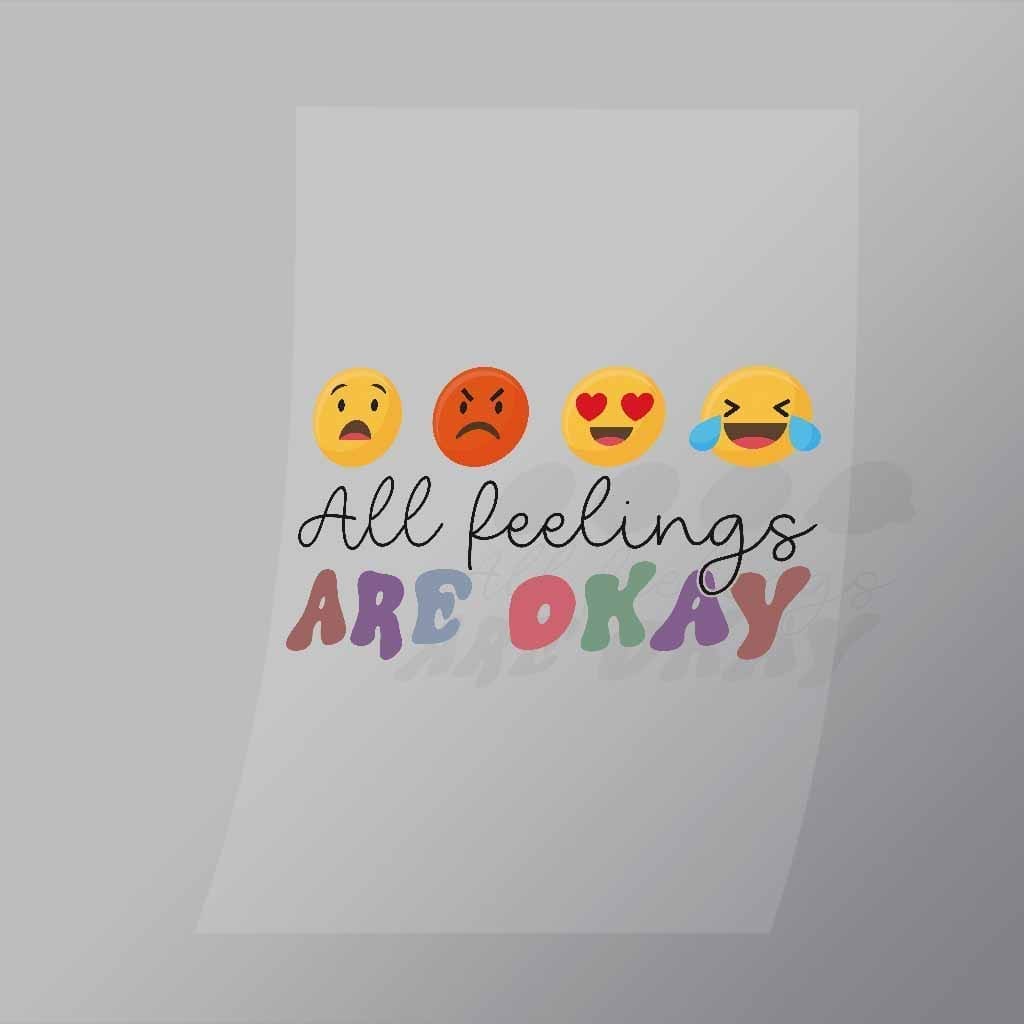 A great All Feelings Are Okay DTF (Direct to Film) Transfer available in multiple sizes. (Beased on width at artwork aspect ratio)