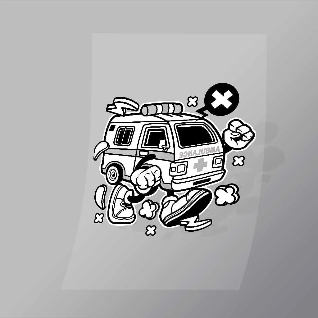 A great Ambulance DTF (Direct to Film) Transfer available in multiple sizes. (Beased on width at artwork aspect ratio)