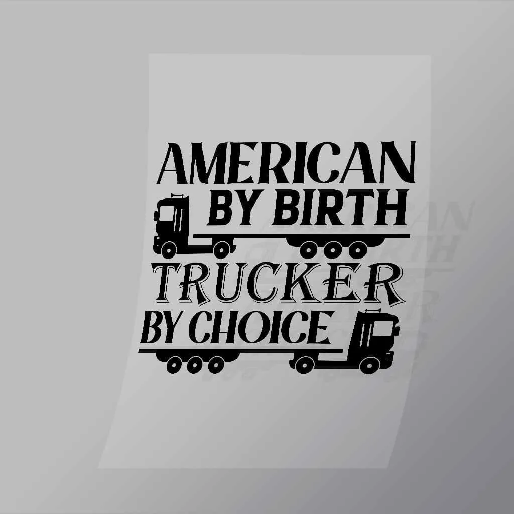 A great American By Birth Trucker By Choice DTF (Direct to Film) Transfer available in multiple sizes. (Beased on width at artwork aspect ratio)
