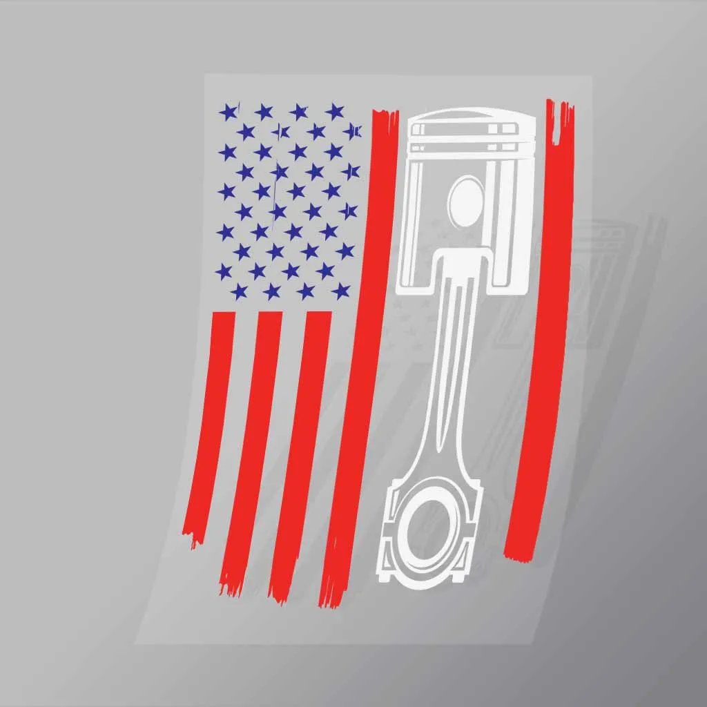 A great American Piston DTF (Direct to Film) Transfer available in multiple sizes. (Beased on width at artwork aspect ratio)