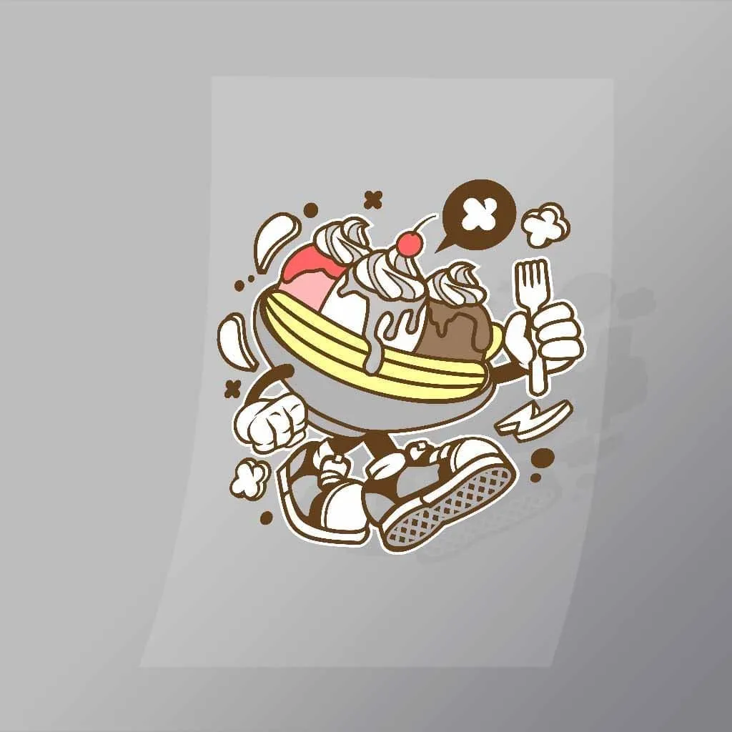 A great Banana Split DTF (Direct to Film) Transfer available in multiple sizes. (Beased on width at artwork aspect ratio)