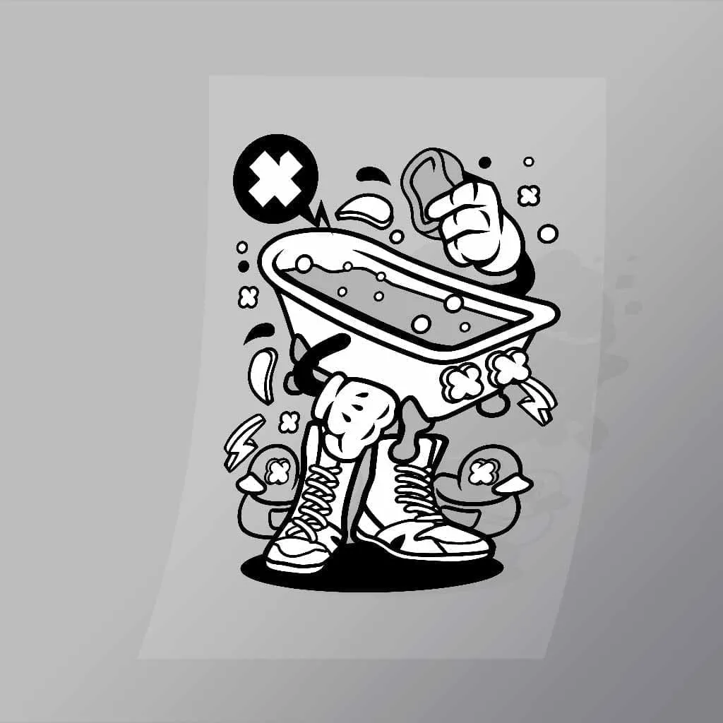 A great Bathtub DTF (Direct to Film) Transfer available in multiple sizes. (Beased on width at artwork aspect ratio)