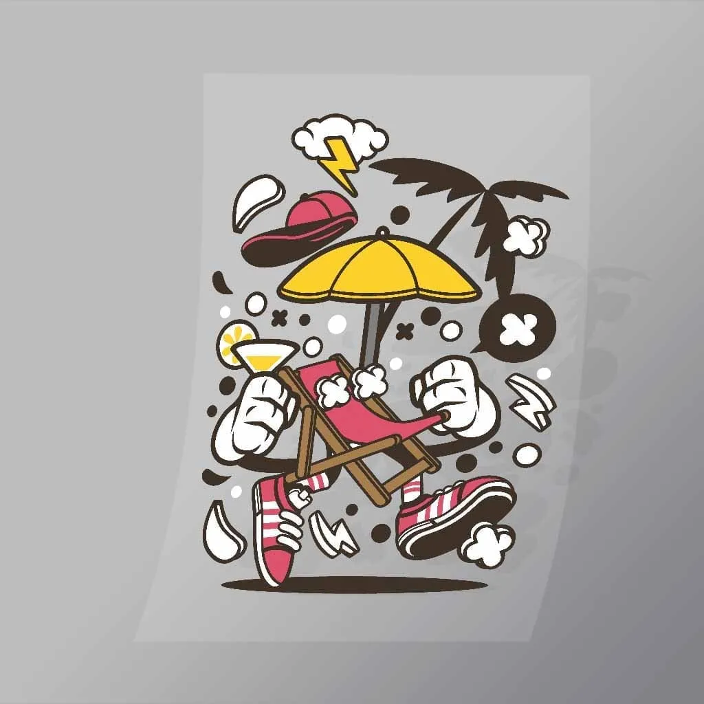 A great Beach Chair DTF (Direct to Film) Transfer available in multiple sizes. (Beased on width at artwork aspect ratio)