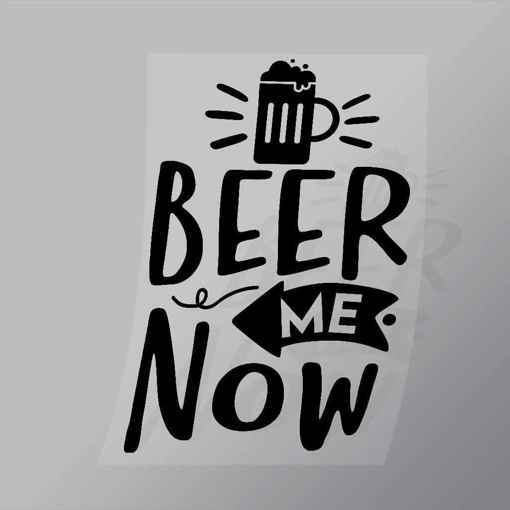 A great Beer Me Now Black DTF (Direct to Film) Transfer available in multiple sizes. (Beased on width at artwork aspect ratio)