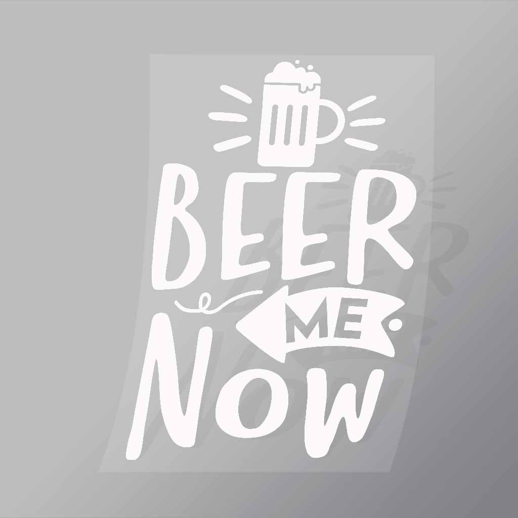 A great Beer Me Now White DTF (Direct to Film) Transfer available in multiple sizes. (Beased on width at artwork aspect ratio)