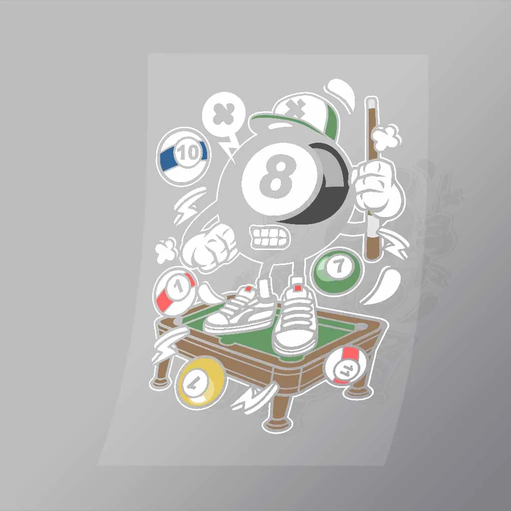 A great Billiard DTF (Direct to Film) Transfer available in multiple sizes. (Beased on width at artwork aspect ratio)