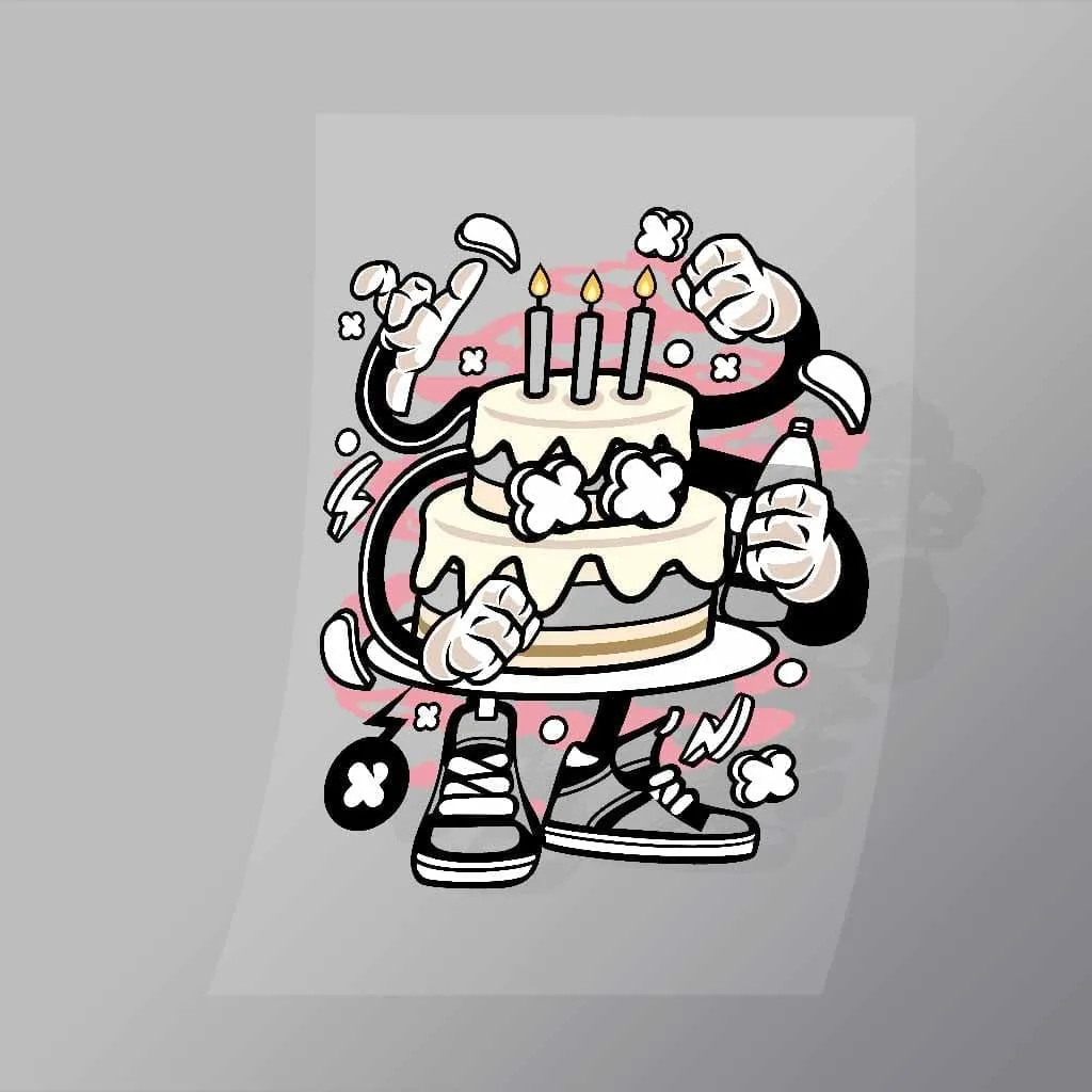 A great Birthday Cake DTF (Direct to Film) Transfer available in multiple sizes. (Beased on width at artwork aspect ratio)