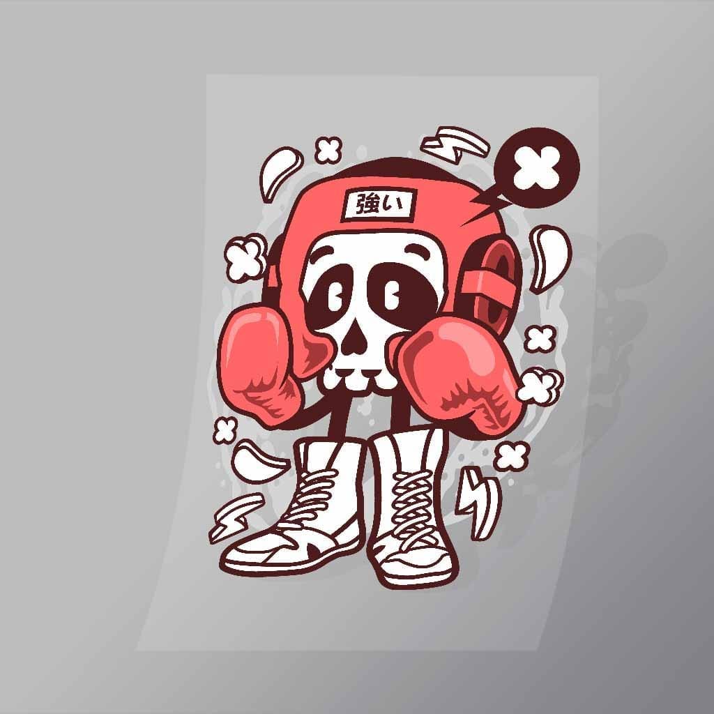 A great Boxing Skull DTF (Direct to Film) Transfer available in multiple sizes. (Beased on width at artwork aspect ratio)