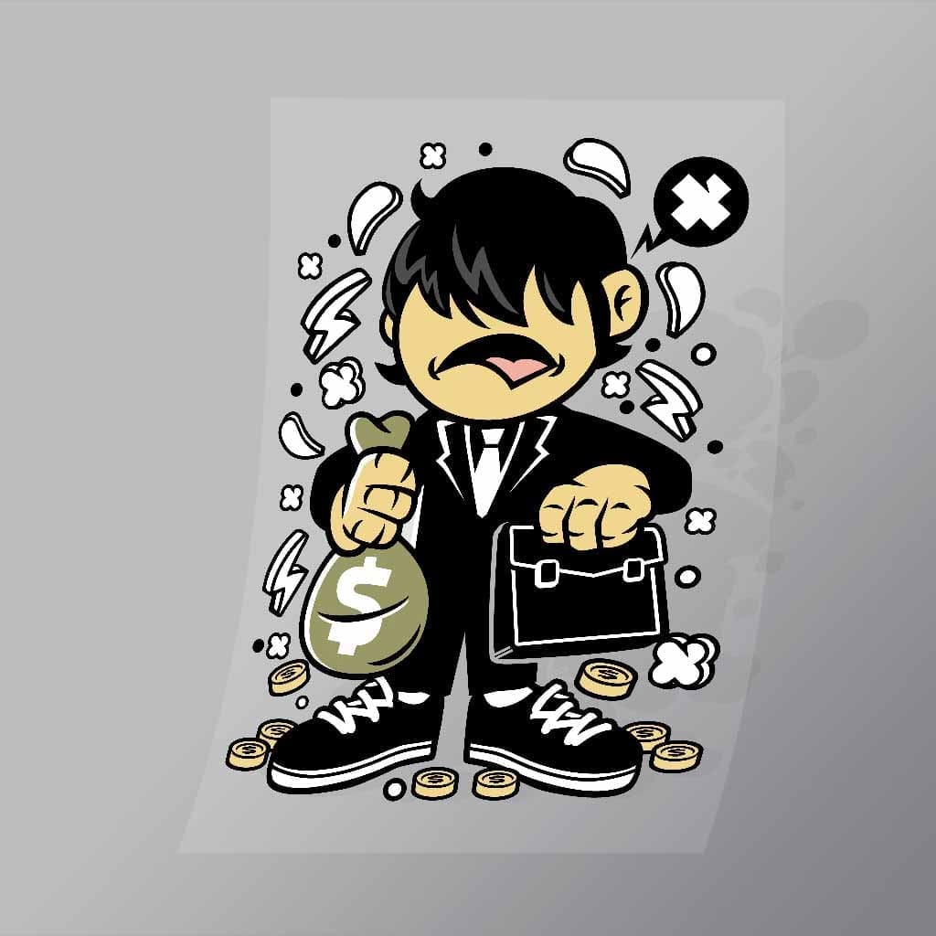 A great Business Kid DTF (Direct to Film) Transfer available in multiple sizes. (Beased on width at artwork aspect ratio)