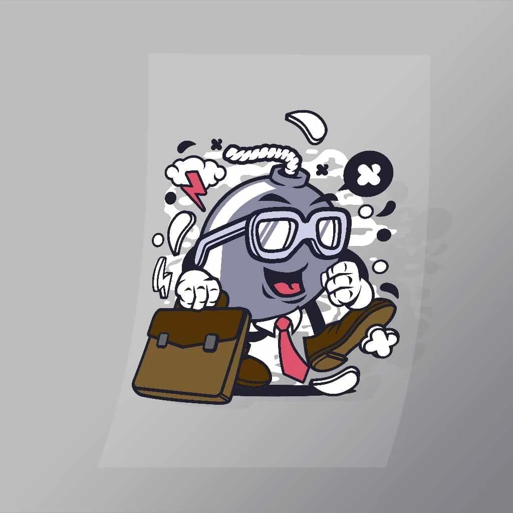 A great Businessman Bomb DTF (Direct to Film) Transfer available in multiple sizes. (Beased on width at artwork aspect ratio)