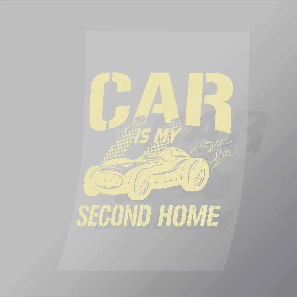 A great Car Is My Second Home Yellow DTF (Direct to Film) Transfer available in multiple sizes. (Beased on width at artwork aspect ratio)