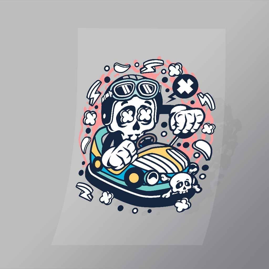 A great Car Toy Skull DTF (Direct to Film) Transfer available in multiple sizes. (Beased on width at artwork aspect ratio)