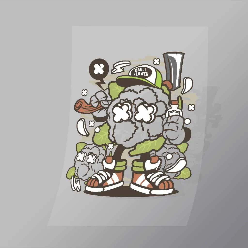A great Cauliflower DTF (Direct to Film) Transfer available in multiple sizes. (Beased on width at artwork aspect ratio)
