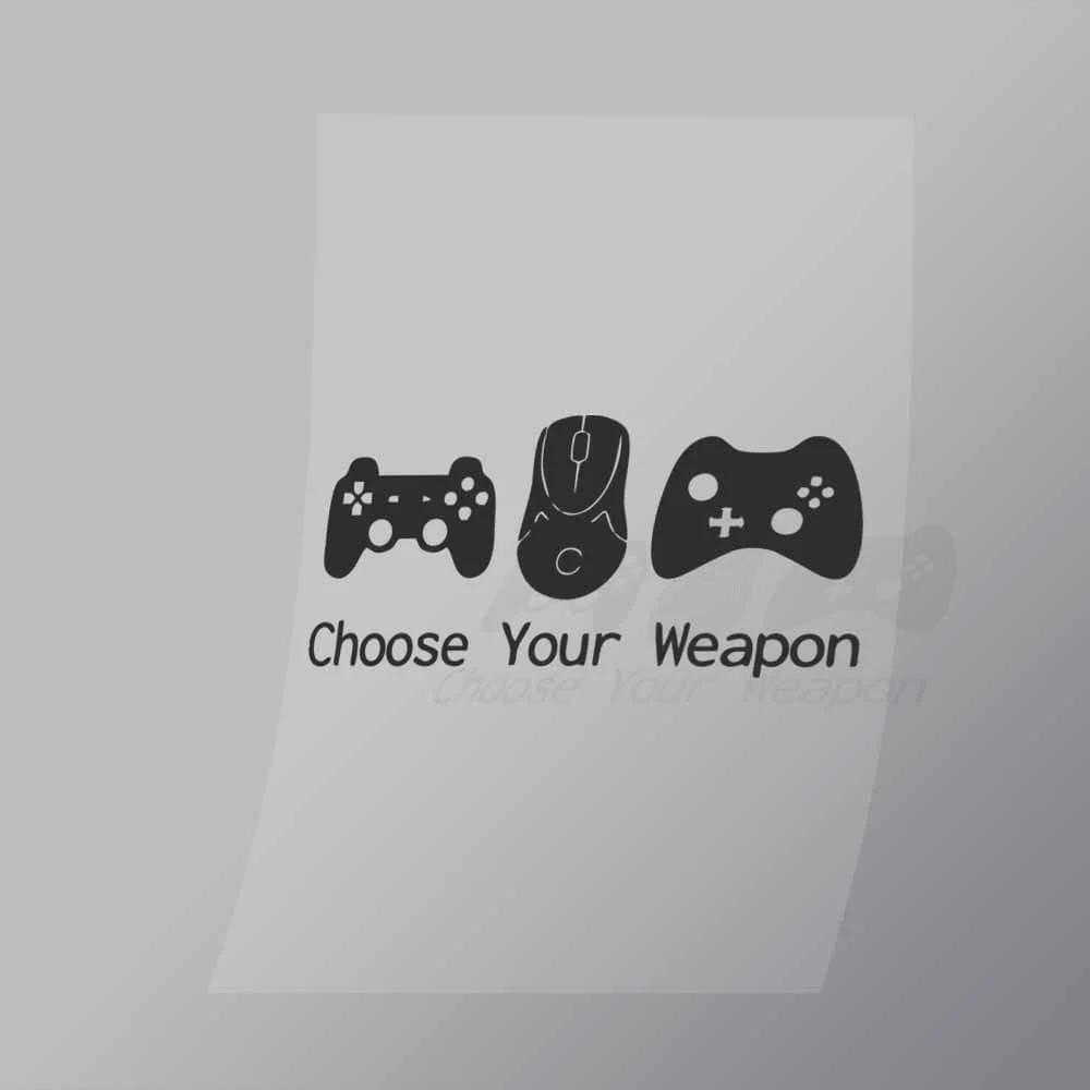 A great Choose Your Weapon DTF (Direct to Film) Transfer available in multiple sizes. (Beased on width at artwork aspect ratio)