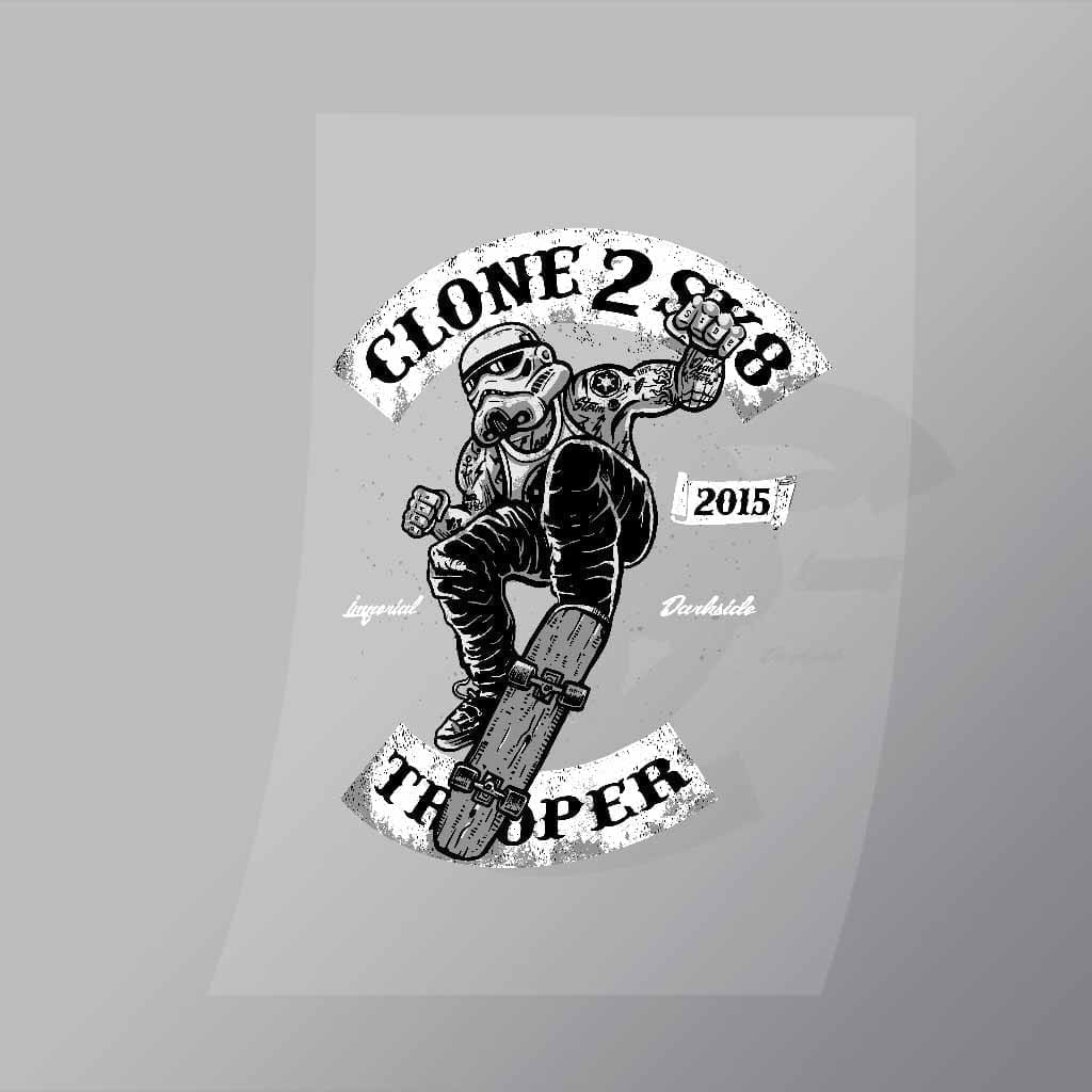 A great Clone 2 Sk8 DTF (Direct to Film) Transfer available in multiple sizes. (Beased on width at artwork aspect ratio)