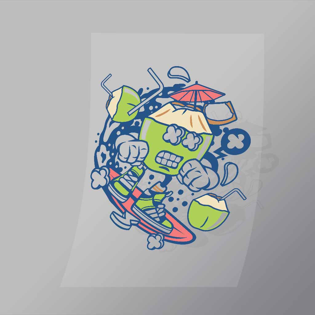 A great Coconut Surfer DTF (Direct to Film) Transfer available in multiple sizes. (Beased on width at artwork aspect ratio)