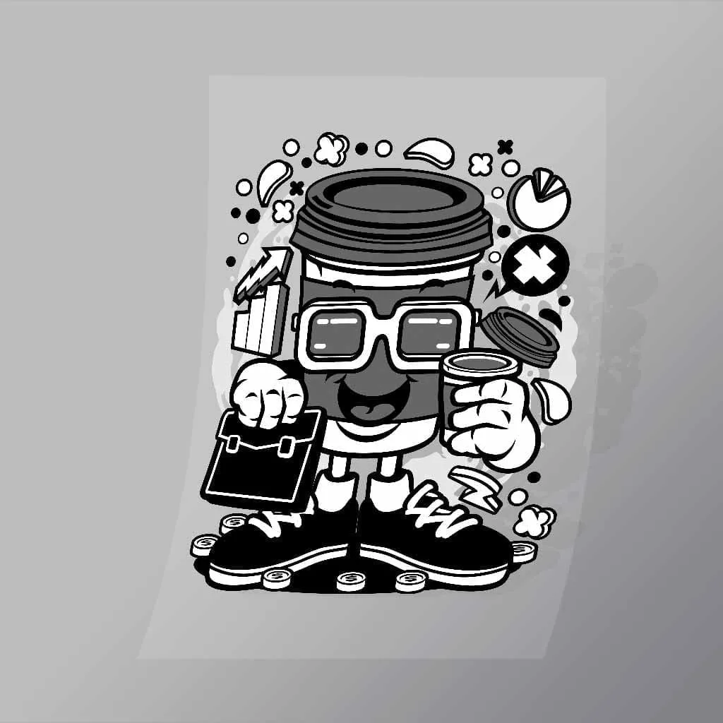 A great Coffee Cup Businessman DTF (Direct to Film) Transfer available in multiple sizes. (Beased on width at artwork aspect ratio)