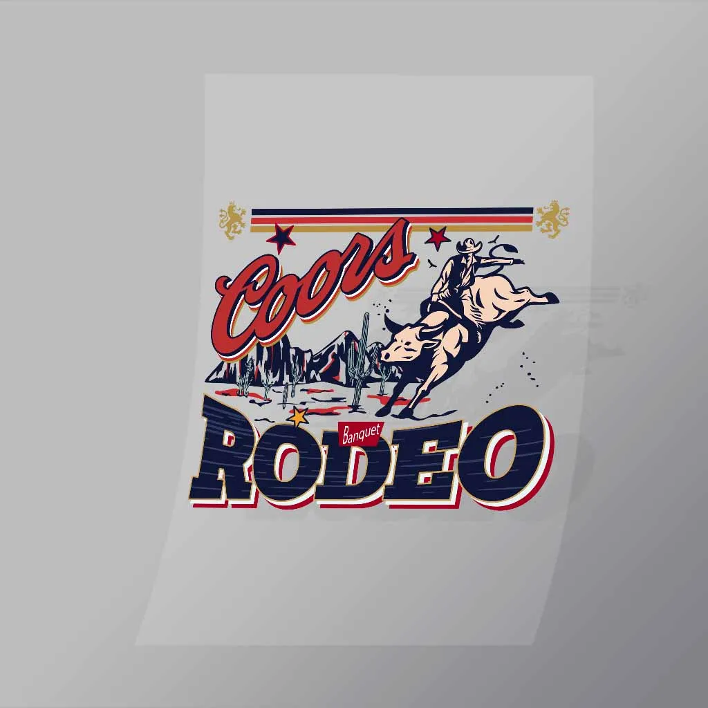 A great Coors Rodeo DTF (Direct to Film) Transfer available in multiple sizes. (Beased on width at artwork aspect ratio)