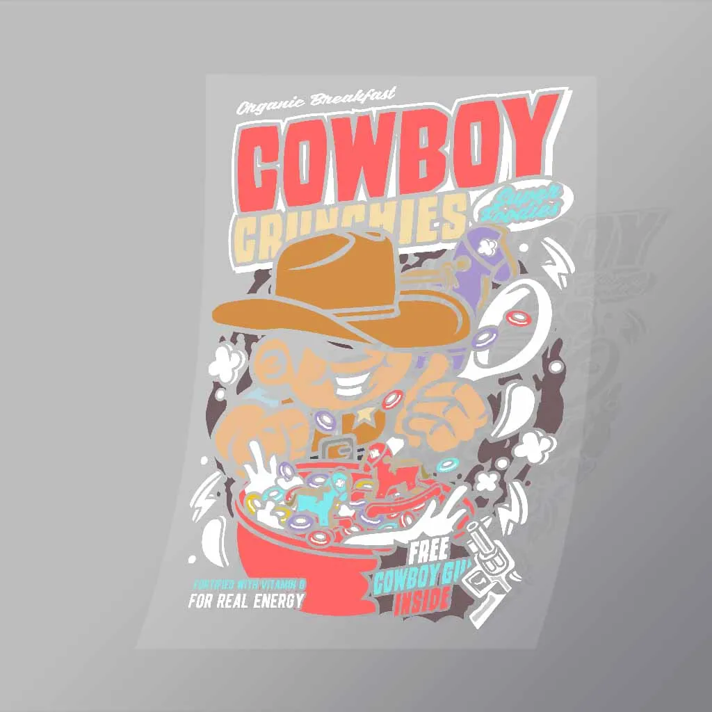 A great Cowboy Crunchies DTF (Direct to Film) Transfer available in multiple sizes. (Beased on width at artwork aspect ratio)