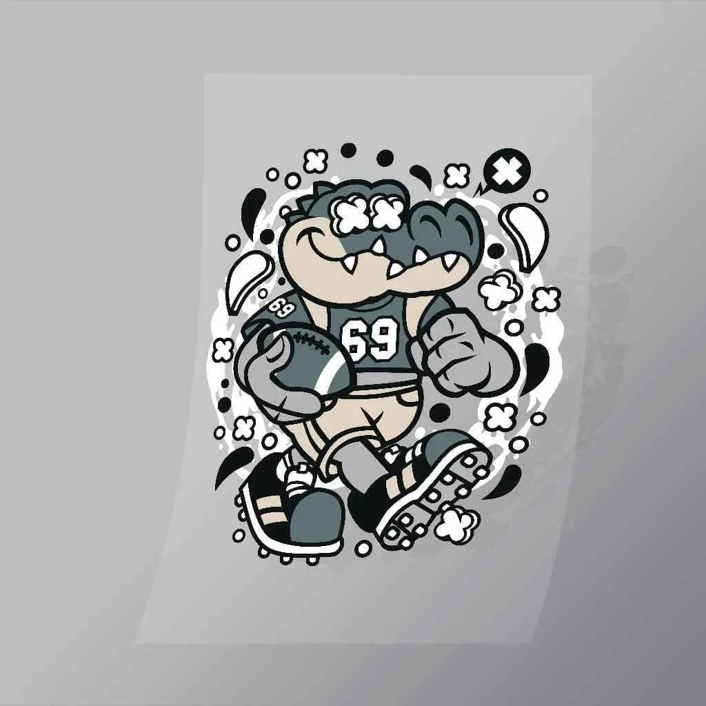 A great Crocodile Football DTF (Direct to Film) Transfer available in multiple sizes. (Beased on width at artwork aspect ratio)