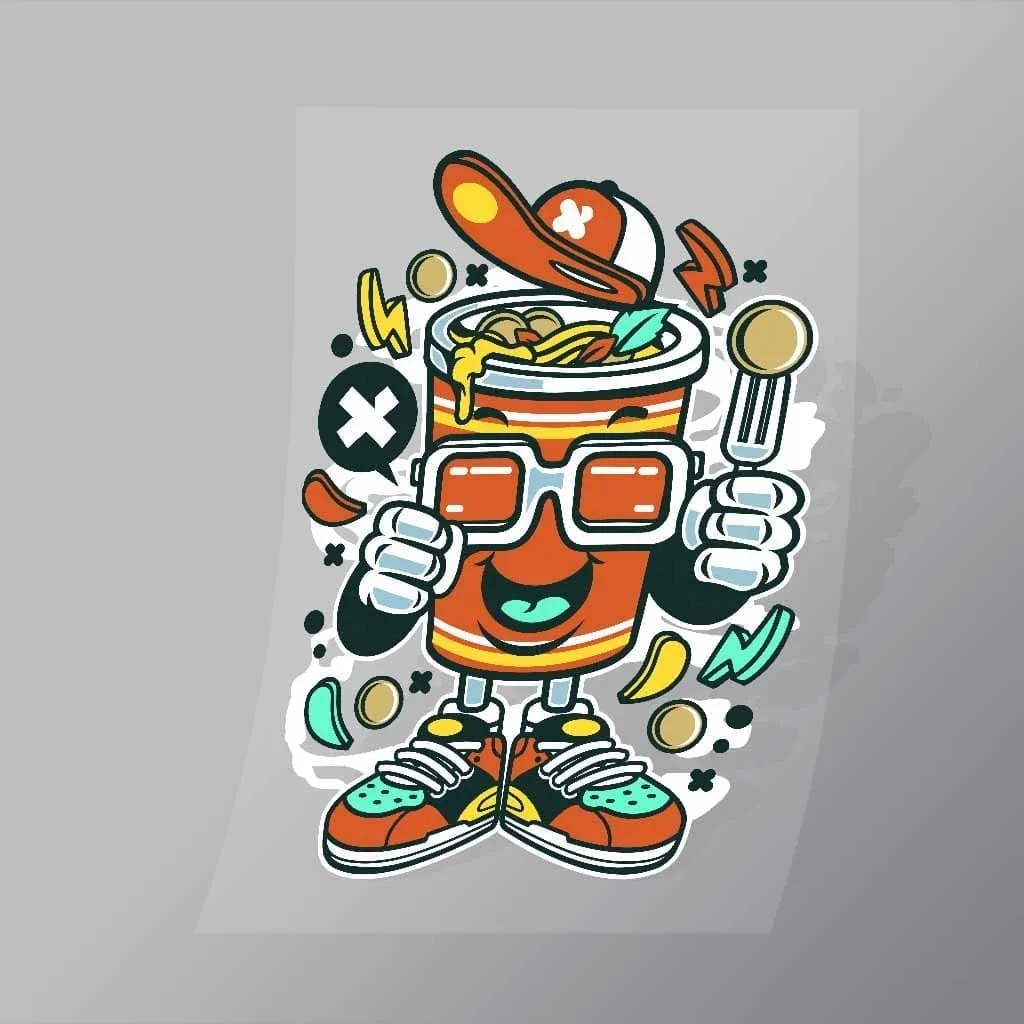 A great Cup Noodle DTF (Direct to Film) Transfer available in multiple sizes. (Beased on width at artwork aspect ratio)