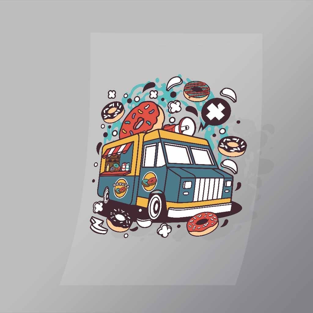 A great Donut Van DTF (Direct to Film) Transfer available in multiple sizes. (Beased on width at artwork aspect ratio)