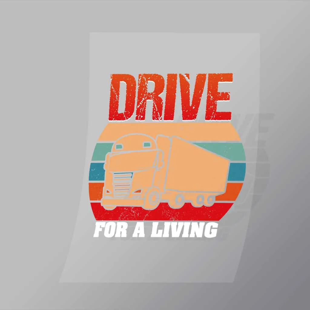 A great Drive For a Living DTF (Direct to Film) Transfer available in multiple sizes. (Beased on width at artwork aspect ratio)