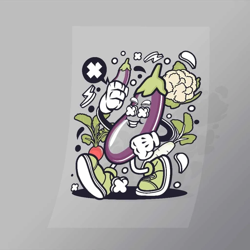 A great Eggplant DTF (Direct to Film) Transfer available in multiple sizes. (Beased on width at artwork aspect ratio)